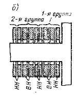 Рис. 1.3 Схемы обмоток трансформатора (а) – концентрических, (б) – дисковых чередующихся