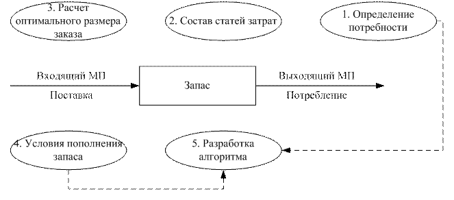 Для того, чтобы запас мог обеспечивать имеющуюся потребность, необходима реализация процесса управления запасами. Под управлением запасами понимается деятельность, направленная на обеспечение требуемого уровня запаса. Процесс управления запасами требует алгоритма управления запасами. Процедура разработки такого алгоритма включат несколько этапов, приведенных на рисунке.