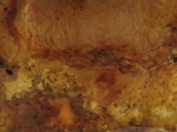 Рис. 4.5.2 Рожа. Почка свиньи Геморрагический гломерулонефрит. Почка увеличена в размере, капсула напряжена, снимается легко, форма не изменена, консистенция дряблая, темно-красного цвета. С поверхности и на разрезе в корковом слое видны множественные, равномерно расположенные, красные очажки, величиной с булавочную головку (клубочки в состоянии серозно-геморрагического воспаления). Граница между корковым и мозговыми слоями сглажена.