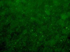 г) Рис. 4.8.5 Специфическое свечение вирусинфицированных нейронов при бешенстве: а – корова, б – лиса, в – собака, г – человек Чума плотоядных Чума плотоядных – контагиозная вирусная болезнь, характеризующаяся катарально-гнойным воспалением слизистых оболочек носовой полости, глаз, желудочно-кишечного тракта, пневмонией, кожной экзантемой и поражением нервной системы. Этиология. РНК-содержащий вирус рода Morbillivirus семейства Paramyxoviridae. Болеют собаки, лисицы, еноты, песцы и др., особенно их молодняк в возрасте до 1 года (собаки), до 5 месяцев (пушные звери). Заражение происходит алиментарно и аэрогенно. Патогенез. Вирус проникает в эпителиальные клетки слизистых оболочек и в регионарные лимфатические узлы, размножается в них, а затем с током крови и лимфы разносится по всему организму и вызывает поражение респираторного и желудочно-кишечного трактов, а также головного мозга и кожи. У собак повышается температура, появляется депрессия, пугливость. Животные кашляют, чихают, наблюдаются серозно-слизисто-гнойные истечения из носа и глаз. Характерно сверхострое и острое течение. Различают легочную, кишечную, нервную, абортивную и смешанную формы болезни. Патанатомия. Глаза – серозно-гнойный конъюнктивит и кератит. Носовая полость – катарально-гнойный ринит. Легкие – катарально-гнойная пневмония. Кожа – везикулярный или пустулезный дерматит. Желудок, кишечник – острое катаральное воспаление, эрозии, язвы. Печень, почки, миокард – зернистая или жировая дистрофия. Гисто: негнойный лимфоцитарный энцефалит. Рис. 3.1. -3.2. Основные патологоанатомические изменения: 1. Катарально-гнойный ринит, конъюнктивит и кератит (гнойный панофтальмит). 2. Катарально-гнойная бронхопневмония. 3. Серозное воспаление бронхиальных, брыжеечных и других лимфоузлов. 4. Катарально-язвенный гастроэнтерит. 5. Зернистая и жировая дистрофия печени, почек, миокарда. 6. Инфекционная сыпь на коже (папулы, пустулы, корочки). 7. Гисто – негнойный лимфоцитарный энцефалит. Диагноз: учитывают клинико-эпизоотологические особенности, результаты вскрытия и гистологического исследования головного мозга. Дифференцировать нужно от бешенства, болезни Ауески, лептоспироза, кишечных гельминтозов.