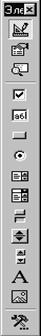 Рис. 4.1 – Вид таблицы задания 2. Заполнить произвольно поля таблицы Фамилия и Должность. Стаж задать в диапазоне 0-30 лет. Оклад: 200 000 – 800 000 руб. 3. Премия составляет 50% оклада. 4. Надбавка за стаж вычисляется на основании стажа. Если стаж больше 10 лет, тогда надбавка равна 20% от оклада, иначе – 0. Здесь используется встроенная функция ЕСЛИ. 5. Налоги составляют 20% от значения поля Итого. 6. Вычислить сумму и среднее значение для каждого столбца. 7. Значение поля Доля рассчитывается как значение поля Получить для каждого работника, деленное на значение общей суммы всех значений поля Получить. 8. Построить столбчатую гистограмму для столбцов Фамилия и Получить. В легенде отобразить фамилии работников. 9. На 2 и 3-м листах создать аналогичные таблицы за февраль и март. 10. Используя объемные ссылки, увеличить оклад за февраль на 10%, а за март на 5% по сравнению с февралем. 11. На 4-м листе создать таблицу с полями Месяц и Всего получить для директора (или другого специалиста). 12. Построить график зарплаты директора фирмы за январь, февраль и март. Создание проекта программы на VBA (Visual Basic For Application) состоит из двух взаимосвязанных процессов: размещение элементов управления на рабочем листе Excel или на форме (формах) пользователя, написание текста программы в соответствии с алгоритмом решаемой задачи. 1. Для размещения элемента управления на рабочем листе необходимо вызвать панель инструментов Элементы управления, активизировать на панели нужный элемент и поместить его в соответствующем месте рабочего листа (установить указатель мыши в нужное место, нажать левую кнопку мыши и, не отпуская ее, очертить размеры элемента управления движением курсора мыши по диагонали).
