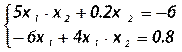 В приложении Mathcad надо записать начальные приближения корней и систему уравнений в блоке given: x1:=1 x2:=1
