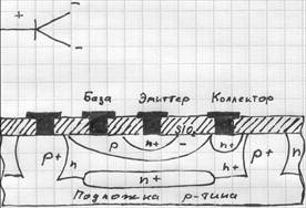 Основным элементом в биполярных ИМС является биполярный n-p-n транзистор. Он обладает лучшими характеристиками, чем транзистор p-n-p типа, а техника изготовления более проста. Поэтому технологический процесс изготовления биполярных интегральных схем отрабатывается так, чтобы параметры n-p-n транзистора были оптимальными, а остальные элементы изготовлены по техническому оптимуму для данного транзистора.