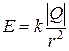 Напряженность поля точечного заряда. В соответствии с законом Кулона, напряженность электростатического поля, создаваемого точечным зарядом Q на расстоянии r от него, равна по модулю
