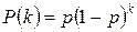 Дискретная случайная величина Х имеет геометрическое распределение с параметром р, если она принимает целые положительные значения k =0, 1, 2, … с вероятностями