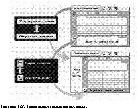 При закрытии и повторном вызове транзакции заказа на поставку экран открывается в том же формате, в котором был при выходе. Если обзор документов и заголовок были закрыты, а обзор позиций и подробные данные позиции были открыты, отображается такой же формат экрана. Неважно, с помощью какой функции (создать, изменить или просмотреть) был открыт заказ на поставку. Можно переключаться между этими функциями с помощью пиктограмм Создать и Просмотреть/изменить. С помощью пиктограммы Другой заказ на поставку также можно напрямую перейти к другому заказу на поставку или к заявке.
