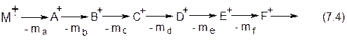 7.4.2.Метод фотоионизации. Молекулы ионизируют интенсивным коротковолновым излучением, например, гелиевые разрядные лампы дают излучение eо = 21,21 эв. Им можно ионизировать практически все органические молекулы. Использование источников с непрерывными спектрами и монохроматоров позволяет плавно изменять длину волны фотонов, вследствие чего фотоионизация успешно применяется для определения ПИ с точностью до 0,05 – 0,01 эв. Масс-спектр при фотоионизации имеет те же особенности, что и при электронном ударе: много фрагментарных и мало молекулярных ионов. Поэтому и этот метод мало пригоден для изучения природных соединений