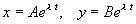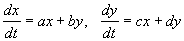 Здесь a, b, c, d - константы, x, y ‑ декартовы координаты на фазовой плоскости. Общее решение будем искать в виде:
