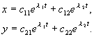 Если подкоренное выражение отрицательно, то l 1,2 комплексно сопряженные числа. Предположим, что оба корня уравнения (4.7) имеют отличные от нуля действительные части и что нет кратных корней. Тогда общее решение системы (4.4) можно представить в виде линейной комбинации экспонент с показателями l 1, l 2: