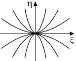 Из курса линейной алгебры известно, что в случае неравенства нулю действительных частей l 1, l 2 исходную систему (4.4) при помощи преобразований (4.11) всегда можно преобразовать к каноническому виду (4.10) и изучать ее поведение на фазовой плоскости ξ, η. Рассмотрим различные случаи, которые могут здесь представиться. Корни λ1, λ2 – действительны и одного знака В этом случае коэффициенты преобразования действительны, мы переходим от действительной плоскости x,y к действительной плоскости ξ, η. Разделив второе из уравнений (4.10) на первое, получим: