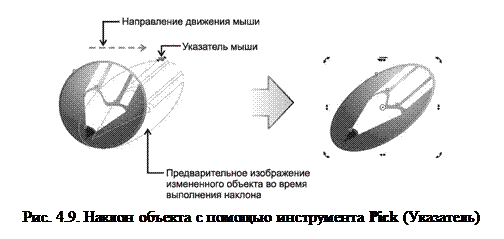 Перетащите мышью верхний боковой маркер, как показано на рис. 4.9. Объект наклонится относительно своей противоположной стороны в направлении перетаскивания маркера. Примечание. Удерживая во время наклона объекта нажатой клавишу Alt, можно одновременно наклонять объект по горизонтали и вертикали. Удерживая нажатой клавишу Ctrl, можно наклонять объект на заданный по умолчанию угол (15°).