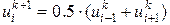 – при выбранном шаге по времени значения температуры в точке в момент времени определяются по формуле (3.5.8):