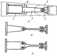 Крепление элеронов к крылу производится при помощи узлов навески. В узел навески входит кронштейн, закрепленный на крыле, кронштейн на элероне и шарнирный болт. Конструктивное оформление узлов навески весьма многообразно. Кронштейны изготовляются литьем, штамповкой, сваркой с необходимой последующей механической обработкой; встречаются конструкции фрезерованных и клепаных кронштейнов. Конструкция узлов навески должна обеспечить выполнение требования взаимозаменяемости и исключить возможность заклинивания элерона при деформации крыла в полете. Наибольшее распространение получили узлы навески, выполненные в виде вильчатого соединения. Кронштейн с ухом обычно крепится к крылу. В ухе устанавливается шариковый сферический подшипник. Возможность плоскости внутреннего кольца подшипника поворачиваться относительно плоскости наружного кольца исключает возможность заклинивания элерона в полете при его деформации и деформации крыла. Конструкция таких узлов показана на рисунке 17. У двухопорного элерона узел может выполняться по схеме, изображённой на рисунке 17б. В этой конструкции в ухе 1 устанавливается шарнирный подшипник 2, а в проушинах кронштейна 5, если он изготовлен из алюминиевых и магниевых сплавов, устанавливают под шарнирный болт 4 стальные втулки 3, что предотвращает быстрый износ кронштейна и появление люфтов. В таком соединении шарнирный болт работает на срез по двум плоскостям. У многоопорных элеронов взаимозаменяемость может быть обеспечена при больших допусках на размеры между узлами навески, если узел выполнить по схеме, показанной на рисунке 17в. Здесь шарнирный болт 4 вместе со втулкой 6 и ухом 1 с шарнирным подшипником 2 имеет возможность устанавливаться во втулках 3 кронштейна 5. Обеспечение требований взаимозаменяемости может быть достигнуто и навеской элерона на ориентирующихся по размаху узлах (рис.18а,б). Элементом этого узла, обеспечивающим ориентировку по размаху, является серьга. Поворот серьги относительно вертикального вспомогательного болта, которым она крепится на кронштейне 1, и обеспечивает требуемую установку узла. В серьге устанавливается шарнирный подшипник. Но один из кронштейнов навески выполняется жестким (без серьги), что исключает осевое перемещение элерона. Применение кронштейнов с промежуточной серьгой исключает и необходимость больших вырезов в носке элерона для постановки шарнирного болта. В этом случае серьга шарнирным болтом крепится к кронштейну элерона при его сборке, а монтаж и демонтаж элерона осуществляется при помощи вспомогательных болтов, имеющих хороший доступ снаружи.