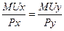 Величину предельной нормы замещения x и y можно представить как отношение предельных полезностей данных благ, так как: