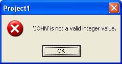 Причина: при попытке обработать строку вместо числа, система попала в исключительную ситуацию. В нашем случае программа запускалась из среды Delphi, которая перехватывает исключительную ситуацию и показывает вам приведенное выше окно Error. Нажмите OK и вы увидите то место в программе, где возникла исключительная ситуация. Программа приостановлена, продолжить ее выполнение можно, нажав в среде Delphi кнопку Run. Приложение выдаст сообщение о том, что JOHN — это неверное числовое значение (рисунок 1.30):