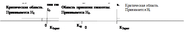 Двусторонняя критическая область используется, если, согласно конкурирующей гипотезе, одна рассматриваемая величина может быть как больше, так и меньше (не равна) другой.