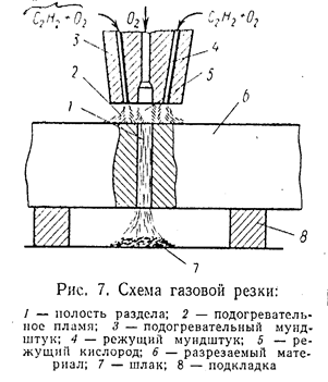 Газовая резка. Газовая резку применяют для разделки прутков из стали. Разделке подлежат преимущественно крупные профили со стороной квадрата до 300 мм. В основе способа – условия превышения tпл металла над температурой его воспламенения, что характерно для большинства сталей.