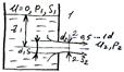 Пусть мы имеем ёмкость из которой через отверстие в стенке вытекает жид-ть пот. энергия жид-ти частично превращается в кинетическую, частично затрачивается на приобретение местного сопротивления. Задача состоит в том, чтобы определить скорость U2 и гидравлич. сопрот. расход. Напор пост, т.е. z1=const, то можно считать, что U1=0. Перепад давлений: P1+ρgz1-P2 Будем считать, что отверстие мало, а стенка тонкая. Частицы обтекая крону, движутся по криволинейным траекториям, что называют центробежными силами направ. к оси, которые сжимают струю d2<d. Отношение площадей S2/S называют коэффициентом совершенного сжатия струи Уравнение Бернулли