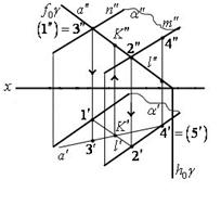 Т.к. невидима, то и вся горизонтальная проекция прямой в эту сторону от – невидима, а в обратную от – видима. Видимость прямой меняется в точке пересечения прямой с плоскостью.