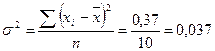 Поскольку имеются отдельные значения признака, данные не сгруппированы, применим невзвешенные формулы показателей вариации: