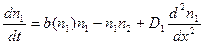 b(n1) = a + bn1 – cn12,(3) d(n2) = d0 + d1n2,(4)Предположим, что обе популяции изолированы на некотором конечном ареале, скажем на интервале [0,l], тогда граничные условия запишем в виде: