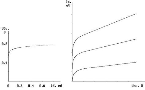 g КЭ= Входное дифференциальное сопротивление rБЭ – величина, обратная входной проводимости rБЭ = 1 /gБЭ. Входное сопротивление rБЭ и крутизна передаточной характеристики S связаны соотношением rБЭ = b / S, (4) где b – дифференциальный коэффициент передачи тока транзистора в схеме ОЭ. Для практических расчётов S в (4) определяется по соотношению (2, а). Ориентировочный пример 1.2. Если IК = I мА; φ Т = 25 мВ; b = 100, тогда rБЭ = 2,5 кОм. Обратите внимание на то, что при уменьшении тока покоя коллектора I К0 уменьшается крутизна передаточной характеристики S, увеличиваются входное rБЭ и выходное rКЭ сопротивления транзистора. Величину C учётом введённых обозначений малосигнальных параметров получаем основные уравнения биполярного транзистора, управляемого напряжением dIБ = dUБЭ/rБЭ; (5) dIК = S dUБЭ + dUКЭ/rКЭ. (6) При анализе схем на биполярных транзисторах с общим эмиттером, если состояние транзистора управляется током базы, удобно пользоваться семейством выходных характеристик (рис. П2.5) и входной характеристикой – рис. П2.4. Обратите внимание на то, что выходные характеристики на рис. П2.3 снимаются при постоянных напряжениях база-эмиттер U БЭ, а характеристики на рис. П2.5 – при постоянных токах базы I Б. Выходное сопротивление в данном случае меньше, чем в случае транзистора, управляемого напряжением. Представив БТ в виде четырёхполюсника, установим взаимосвязь между входными и выходными токами и напряжениями U БЭ = F 3(I Б, U КЭ); I К = F 4(I Б, U КЭ). При малой амплитуде сигналов, когда не проявляется нелинейность электродных характеристик транзистора, эти зависимости можно считать линейными. Полные дифференциалы напряжения база-эмиттер и тока коллектора