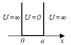 Частица в одномерной яме с бесконечно высокими стенками (свободный электрон в металле, или приближенно электрон в атоме).