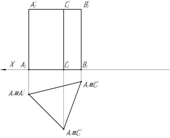 Для того, чтобы построить тень от одного ГО на другой необходимо: 1. Построить падающие тени на плоскость проекции от прямой и треугольника.___________________ 2. Выделить точки пересечения тени прямой с контуром тени треугольника.______________________ 3. Лучом в 45⁰ вернуть эти точки на проекцию треугольника и соединить их._______________________ _________________________________________________________________________________________ Для построения падающей тени от прямой 12 на поверхность цилиндра необходимо через прямую_____ провести лучевую плоскость и построить линию пересечения этой плоскости с поверхностью цилиндр