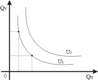 Кривая безразличия – графическое изображение набора безразличия, то есть набора вариантов потребительского выбора, каждый из которых приносит потребителю один и тот же уровень удовлетворения. Экономический смысл: любой индивид осуществляет свой выбор в соответствии со своими потребительскими предпочтениями.