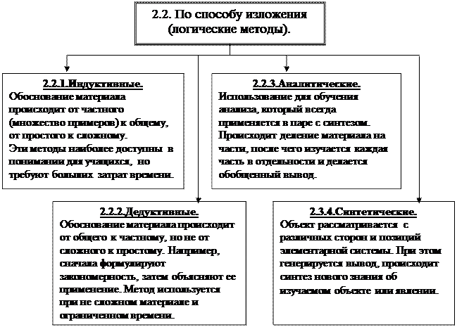 Третья подгруппа во II-ой большой группе методов классифицируется в зависимости от уровня обучения, на который нацелен учебный процесс. Рассмотрим это разделение.