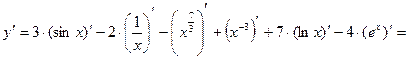 Решение. Приведем все члены функции (1.5) к виду, позволяющему применение формул дифференцирования, и применим теоремы 1.1 и 1.3: