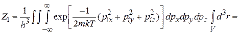 для интеграла в квадратных скобках находим . В результате статистический интеграл поступательного движения частицы