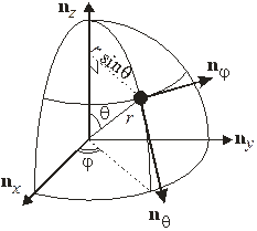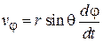 При вращении изменяются углы φ и θ. Угловые скорости связаны с линейными скоростями вдоль вдоль