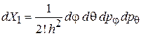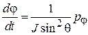 Обобщенными координатами фазового пространства являются углы φ и θ. Для нахождения импульсов, соответствующих этим координатам, используем уравнение Лагранжа