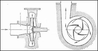 Слева: схема осевого насоса