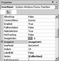Подключение списка изображений к дереву Создав и заполнив список изображений, подключите его к дереву просмотра дисков и каталогов. Для этого отредактируйте свойство ImageList элемента управления treeView1, присвоив ему ссылку на список изображений imageList1 (рис. 14).