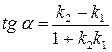 Пусть даны две прямые, образующие углы и с осью Ох: . Их угловые коэффициенты: . Угол между этими прямыми: . Тогда: