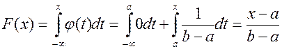 Функция распределения случайной величины Х, распределенной по равномерному закону, имеет вид