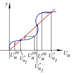 Итерационный процесс в зависимости от начального приближения сходится либо к первому либо к третьему точному решению.