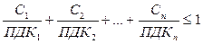 где С - фактическая концентрация веществ, ПДК - установленная для вещества допустимая концентрация. (Общие санитарно-гигиенические требования к воздуху рабочей зоны ГОСТ 12.1.005-88)
