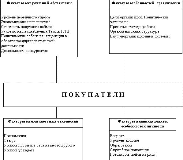 Рынок товаров промышленного назначения - совокупность лиц и организаций, закупающих товары и услуги, которые используются при производстве других товаров и услуг, продаваемых, сдаваемых в аренду или поставляемых другим потребителям. К ним относятся отрасли: сельское хозяйство, рыбное хозяйство, горнодобывающая промышленность, обрабатывающая промышленность, строительство, транспорт, связь, коммунальное хозяйство, банковское, финансовое и страховое дело, сфера услуг. Основные характеристики рынка товаров промышленного назначения: · на нем меньше покупателей; · но эти немногочисленные покупатели крупнее; · они сконцентрированы географически; · спрос на эти товары определяется спросом на товары широкого потребления, он не эластичен; · спрос на эти товары резко меняется (например, спрос на потребительские товары может привести к росту спроса на оборудование для их производства); · покупатели этих товаров - профессионалы (технические эксперты по товарам). Основные факторы, оказывающие влияние на поведение покупателей товаров промышленного назначения, представлены на рис. 1.