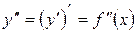 Пусть функция y=f(x) дифференцируема на некотором отрезке [a,b]. Значение первой производной f’(x), как отмечалось ранее, зависит от x, т.е. первая производная представляет собой тоже функцию от x. Дифференцируя эту функцию, можно получить вторую производную от функции f(x). Производная от первой производной называется производной второго порядка или второй производной от первоначальной функции и обозначается символами