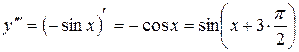 Так, например, если y=x5, то Производная от второй производной называется производной третьего порядка или третьей производной и обозначается символами Вообще, производной n-го порядка от функции f(x) называется производная от производной (n-1) порядка и обозначается символами y(n)(x), f(n)(x) или