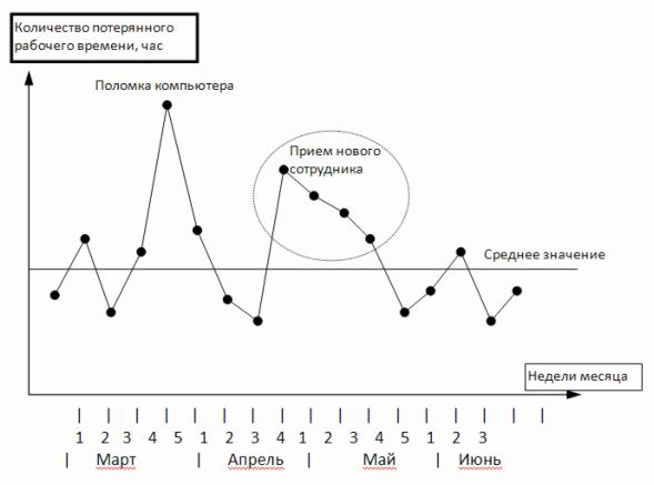 При анализе графика важно отделять несущественные изменения, которые нормальны для исследуемого процесса, от существенных. Лучше всего использовать временной ряд для выявления изменения средней величины. При построении графика важно не перепутать последовательность.