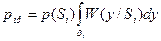 и оно входит в норму разности (2). Что же следует из векторного представления? Вывод таков. Чем дальше друг от друга концы векторов, тем достовернее можно различить сигнал на фоне помех (см. рис. 6). «Развести»концы векторов можно увеличением норму вектора сигнала, иными словами увеличить мощность передатчика, и увеличением нормы разности d, то - есть уменьшить скалярное произведение. Это возможно определенным выбором сигналов. В нашем примере с гармоническими сигналами этому соответствуют сигналы с противоположной фазой, φ1-φ2=π. Существует несколько видов пространств для представления многомерных сигналов. Линейное пространство. Обладает следующими свойствами. Определены расстояния между векторами d. Если вектора равны, d=0. При сложении векторов складываются их координаты. Норма вектора ║x║=√xi2, где xi –координаты вектора. Норма разности ║x-y║=√∑(xi-yi)2. Скалярное произведение (x;y)=║x║║y║cosφ. Скалярное произведение ортогональных сигналов равно нулю. N – мерное Евклидово пространство имеет конечное число координат. Если N=∞, такое пространство называется Гильбертовым. Случайность принимаемых сигналов заставляет привлечь к анализу статистические законы. Это W(y/Si) – условный закон распределения плотности вероятности принимаемого сигнала при условии передачи Si-го сигнала или более кратко - функция правдоподобия. Это первая статистическая характеристика в задаче приема. Помимо этого вводятся априорные (доопытные) вероятности сигналов p(Si). Как и прежде, будем считать, что множество точек в пространстве образуют пространство принимаемого сигнала Y. Принимая сигналы y(t) приемник должен решить, какой сигнал был передан. Для этого всё Y необходимо поделить на области. В нашем примере это β0 и β1. Если у(t) попал в область β0, то следует выносить решение в пользу S0, если в β1- S1. Очевидно, что вероятность правильного приема рпр определятся совпадением двух событий: передачи конкретного сигнала и его попадания в нужную область. поэтому