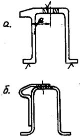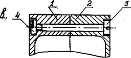 На рис.61. приведены конструктивные схемы корпусов замков 3-ей и 2-ой весовых групп изготовленных из различного материала и различными техпроцессами. Корпуса (обоймы) замков изготавливают горячей объёмной штамповкой Рис.61.а из материала АК-4, ВНС-2 из двух половин, когда в местах усиления стенки имеют значительное утолщение. В этом случае механическая обработка несопрягаемых внутренних поверхностей не делается. Обычно обоймы замков выполняют из листового материала Рис.61.б Х18Н9Т, 30ХГСА, ВНС-2 и др. В местах усиления устанавливают накладки поз.2 из того же материала и