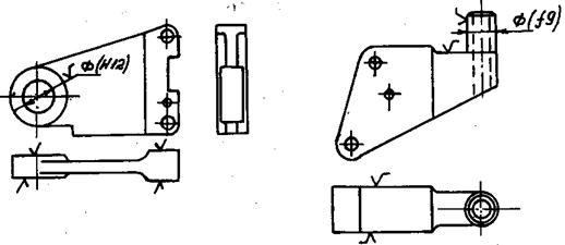 Рис.62. Рис.63 Рис.64. Детали кинематики замка должны быть штампованными или, при наличии сложного контура, литыми, с последующей механической обработкой только сопрягаемых поверхностей. На Рис.62. и 63. приведены примеры элементов замков изготавливаемых литьём из материалов 35ХГСЛ, ВНЛ –3 и др. Несущие рычаги Рис.64. следует изготавливать из высокопрочных сталей ЭП-310Ш