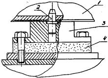 Сборка держателя осуществляется в специальном приспособлении Рис.57, состоящем из рамы 1, реперных площадок 2, стоек 3-4 и направляющих штырей 5-7. Стойки и реперные площадки выставляются относительно рамы и друг друга в строго определённое положение с помощью эталона держателя или в специальном инструментальном стенде. Для компенсации погрешности формы и отклонений от плоскостности рамы приспособления, зазор между реперной площадкой и рамой заполняется суперцементом, имеющем малый коэффициент усадки после затвердевания. Реперные площадки крепят к раме болтами Рис.58.При сборке кассетного держателя профиля поз.1 своими сборочными отверстиями устанавливаются на штыри 2,реперных площадок 3. На общую сборку профиля поступают в собранном виде, т.е. с установленной кинематикой и электропроводкой.
