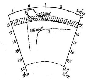 Низкоскоростная область мантии в БРЗМетод Сейсмическое просвечивание Метод - Дисперсия поверхностных волн Метод оценки региональных неоднородностей верхней мантии, глубины и толщины волноводного слоя. Дисперсия − зависимость скорости волн от частоты, обусловленная изменением упругих свойств среды с глубиной и разной эффективной толщиной слоя, в котором распространяются волны разной частоты. Низкочастотные волны с периодами до 600 с, проникают в мантию до глубин более 400 км. Сравнением реальных дисперсионных кривых c кривыми, рассчитанными для разных моделей волноводного слоя, выбираются модели строения верхней мантии. Обнаружено повышение толщины волноводного слоя под океанами относительно континентов, а также в активных т областях континентов по сравнению со стабильными. Кодоволны – интерфиренция продольных и поперечных волн: отраженных от глубинных границ. Исследование строения земной коры и верхней мантии волнами удаленных землетрясений, которые приходят на станции региональной сети под большими углами. (Опережение будет, когда литосфера скоростная, понижение скорости будет в случае низкоскоростных аномалий в мантии (такие аномалии встречаются чаше) – пример байкальский риф) Области пониженных скоростей под литосферой обнаруживаются по распределению времени запаздывания прихода волн по отношению к расчетному времени для стандартной модели сейсмического разреза или относительно годографа Джеффриса – Буллена. Так в 1982 году В. А. Рогожиной и С. В. Крыловым была обнаружена аномальная область низких скоростей в мантии под Байкальским рифтом. Обратная задача восстановления скоростной структуры по этим данным решается при плотной сети лучей, пересекающих аномальную область. Предположения этих ученых различны, модели аномальной зоны тоже разные. 1 – интерпретация В. А. Рогожиной,(предполагала что вся неоднородность находится в верхней мантии) 2 – интерпретация С. В. Крылова (считал что неоднородность не обязатльно находится только в верхней мантии). Штриховка – переходная зона мантии В модели В. А. Рогожиной большое понижение скорости (0,3 км/с) отмечено до 500 км. В модели С. В. Крылова, меньшие аномалии скорости распространены до большей глубины (0,09 км/с до 700 км и 0,07 км/с на глубинах от 700 до 2000 км) – эта модель была принята лучше, так как она показывает наличия потока – в общем связанно с плюмами – на ядре происходит выделение железа, расплав становится более легким и начинает подниматся.