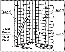 Рис.2 Допускаемые отклонения облицовок. Толщина клеящей прослойки: из раствора - 7 мм, но не более 15 мм; Состав работ: облицовка стен глазурованной плиткой 150x150 мм при толщине шва 1 мм; то же откосов; то же плинтусов. Выработка на 1-го рабочего в смену м Потребность в материалах: плитка облицовочная размером150150 мм, плитка угловая, плитка плинтусная, раствор цементный М50.